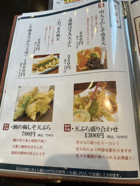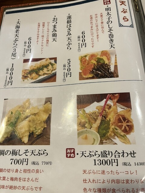 天ぷら定食 1180円税込 ご飯大盛50円税込