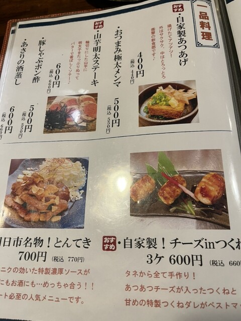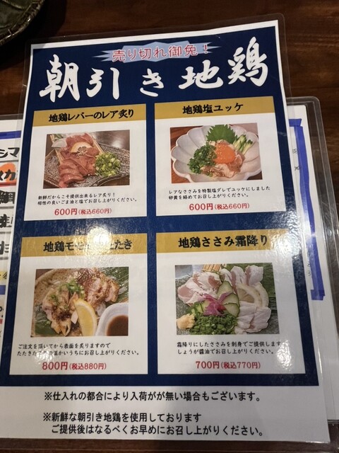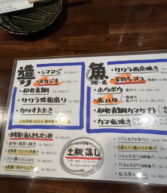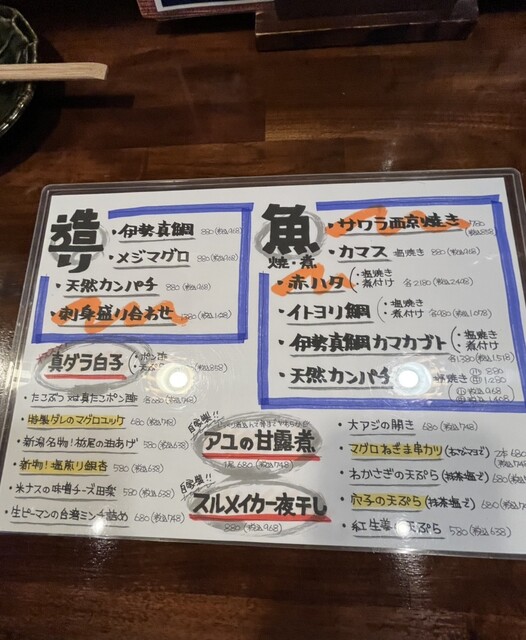 夜メニューの手書きはその日の仕入れで更新されてるみたい