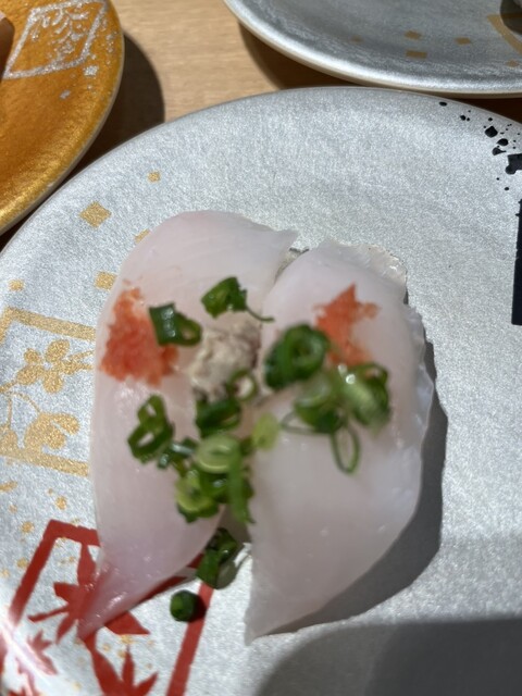 準備して黒板メニュー見ながらレーンを見ると ちょうど大将が握ったクエが流れてきたからとって パクリ