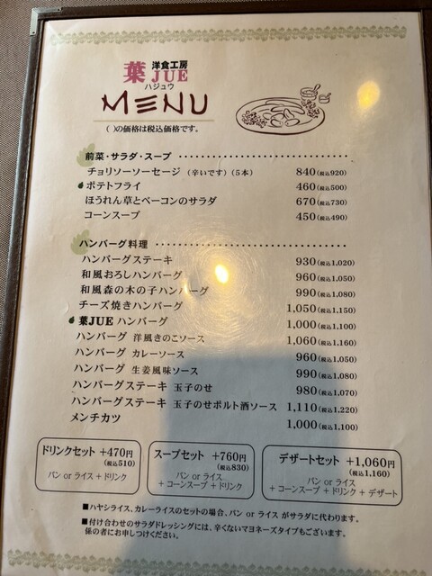 葉ジュウさんの生姜焼きは最高に美味しいと思うが、昔からランチセットが無いのが残念