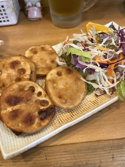 ミンチ肉ハサミかな?肉肉しくカリカリ 蓮根モチモチ 美味い