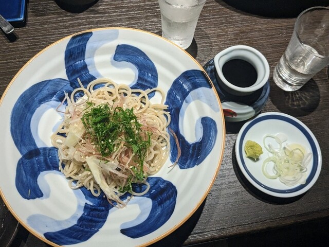 蕎麦料理と馬刺しに舌鼓を打ちながら日本酒を堪能する店。