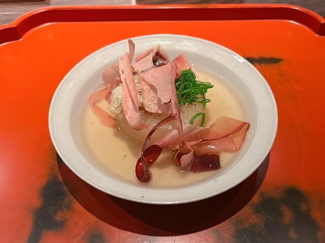 ふぐの白子ポン酢は自分で湯掻いてから食べる新しい形でとても美味しかったです。