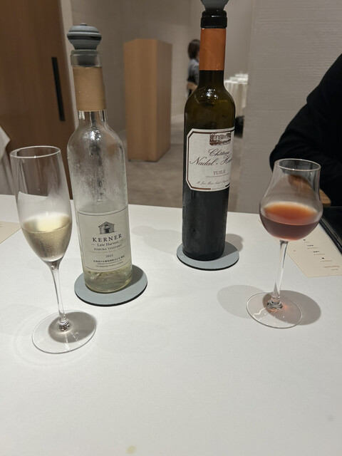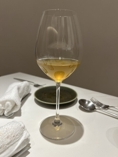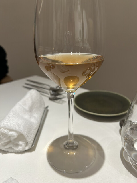 今回はワインはペアリングではなく、事前依頼のボトルワインを中心に、料理に合わせたグラスの白やスパークリングを追加で注文して楽しみました。