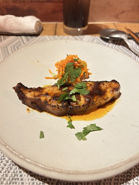 パクチー、ゴマ、茗荷の香りと相まって刺激的でありながら心地よい食べ心地です。