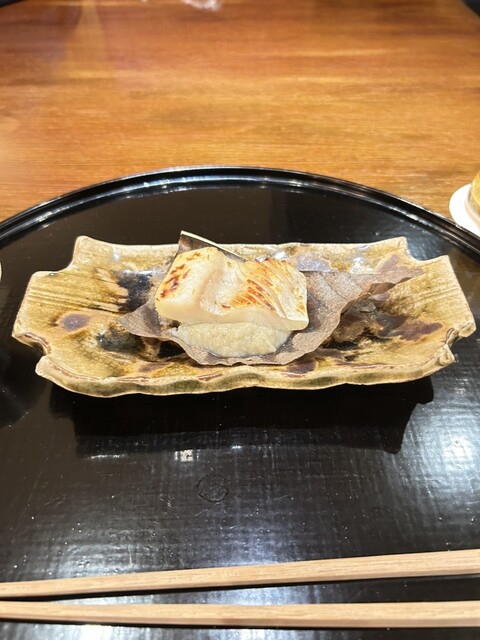 焼き物 マナガツオの味噌漬け 菊芋のすりおろし 朴葉に乗せて