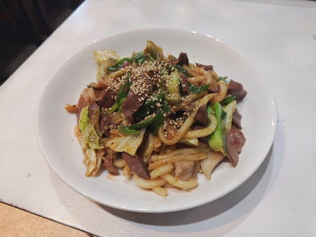 様々なホルモンがたっぷり入った贅沢な焼きうどん!!うどんはやや柔らかめで〆にぴったり!!