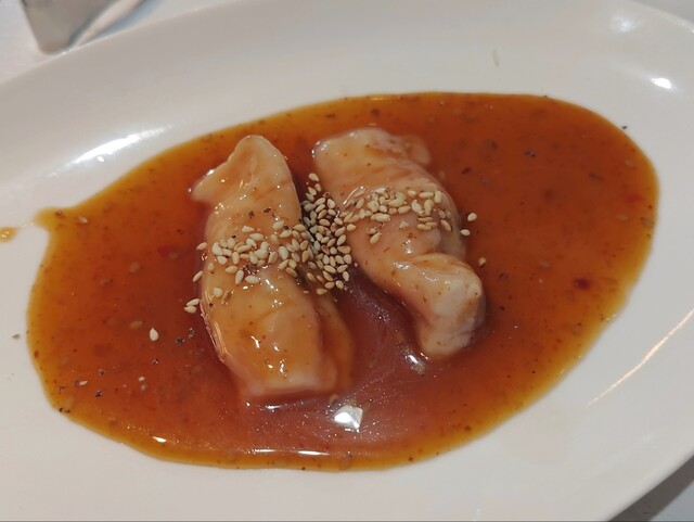 臭みが全くなく、厚切りでジューシー、牛ハツの概念が変わる一品!!各面をこまめ焼くことで均一に火を通し、歯切れのよい食感と濃厚な旨味を感じます!!