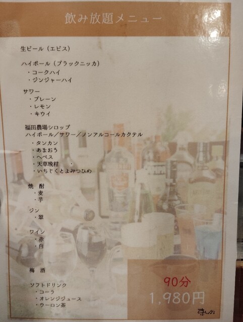 今回は日曜日、月曜日限定の飲放題付き「北新地の始まりコース」を頂きました