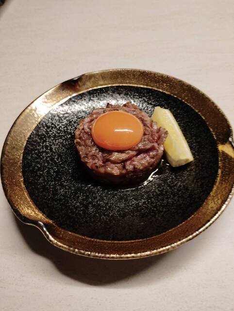 炙りユッケは炙られた香ばしさとレアなところが相まって濃厚な卵と美味し〜いタレに調和されてユッケの概念が変わりました。