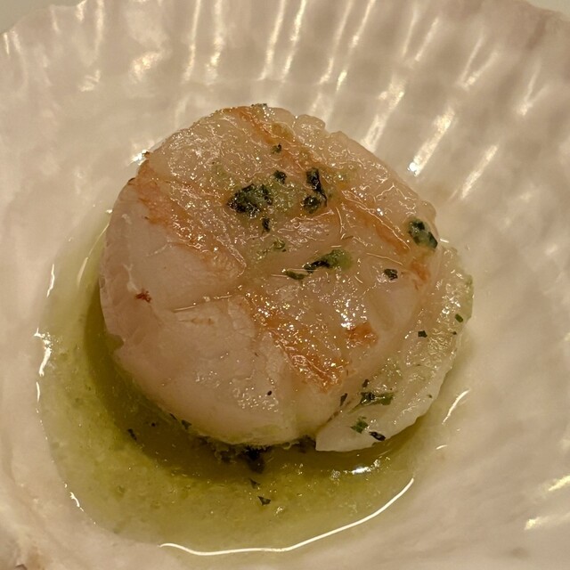 ・北海道産殻つき帆立のオーブン焼き 香草バターソース