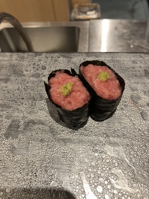 今回は、それぞれ佐渡産の特選のどぐろ炙り、紅ズワイ軍艦、真鯛、南蛮エビと本マグロ三貫、大人のツナマヨ、ネギトロ、いなり、大トロたたき、サーモン、海老の味噌汁、茶碗蒸しを頂く。