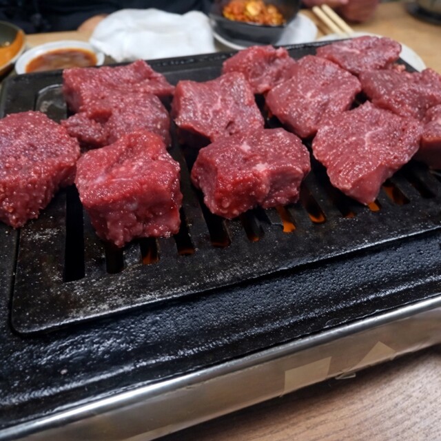 赤身角切りは噛んだ瞬間に旨みが爆発して、肉本来の力強さがダイレクトに伝わってくる。上カルビは脂が甘く、口の中でとろける極...