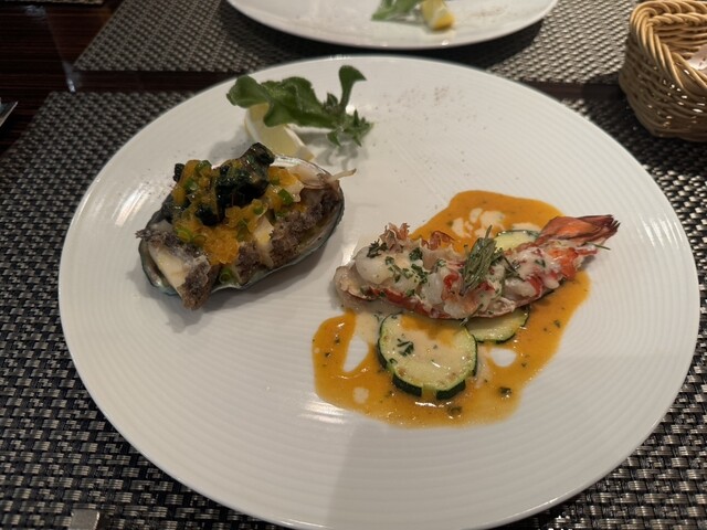 鮑の肝はあまり得意ではありませんが、こちらの肝は苦味もなく食べやすくて驚きました。また、伊勢海老のタレとレモンの風味が調和しており、お代わりをしたくなります。