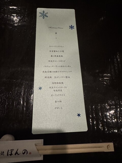 「2025年 Xmas(12/20〜12/25)阿波牛A5ステーキと鮑のステーキ Xmasコース ~藍~ ai」