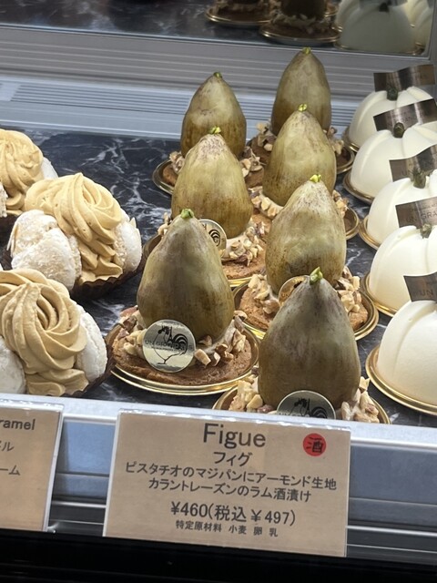 ◉アングランパさんは今回で 3度目になる訪問でした。今回も私の1番のお気に入りのフィグとスプーンを購入しました。このケーキの味と食感とアルコールが凄く使われているのが大好きで食べたくなり伺い、ケーキはお店の前にあるテーブルでいただきました。購入したケーキは、1個をお店の前のテーブルでいただくとしても箱に入れてくれます。食べ終わった箱、スプーンなどは、お店の方に渡すと処分してくれます。(ケーキを購入時にお店の前でいただくとお店の方に話すと食べ終わったら持って来て頂けたら処分しますと言っていただけます。)フィグは何度食べても、とても美味しかったです。また次回伺うのが楽しみです。ご馳走様でした。