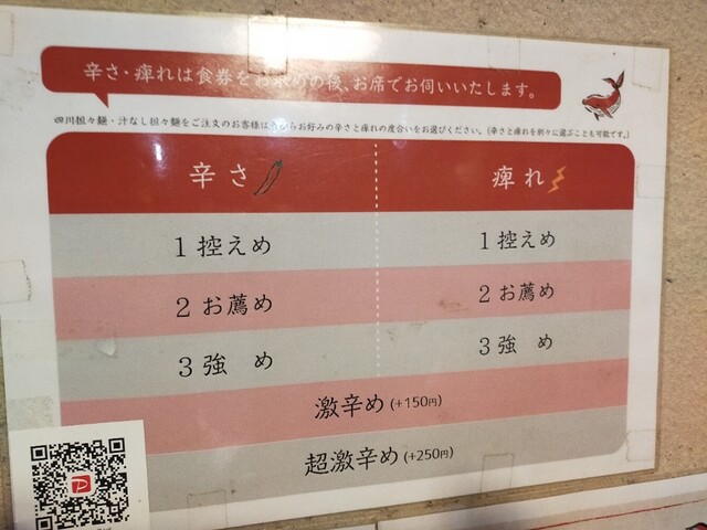 ランチサービスの麺大盛りにして、辛さ3、シビレ2をオーダー。