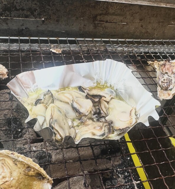 採れたての牡蠣を炭火で焼き、そのまま殻に滲み出た牡蠣エキスと身を口に入れた瞬間、最高の幸せですね〜