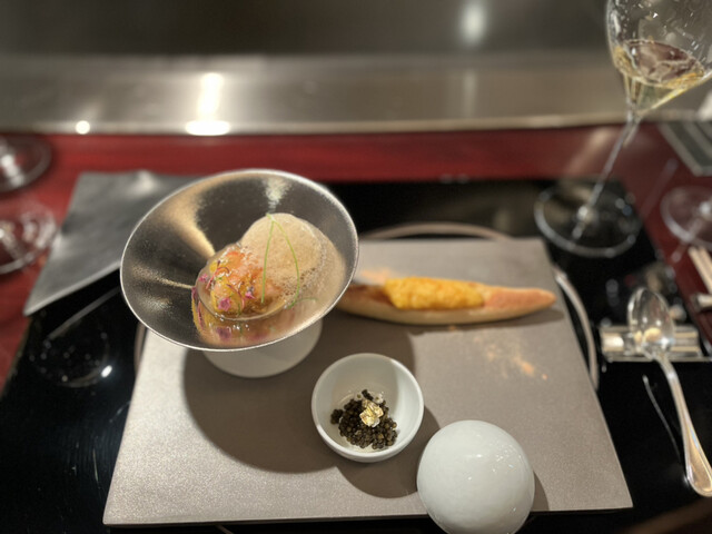 2人だとカウンターで、自分たちのためだけに目の前での担当シェフが調理してくれるのは、とても贅沢で、見てるだけでも感心するし、楽しいです。