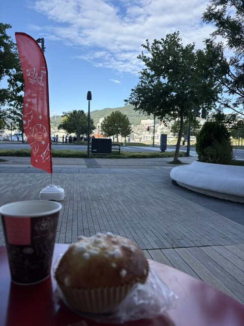 りんごキャラメルのマカロンパンとパンプキンマフィンを購入し、テラスで頂きました。