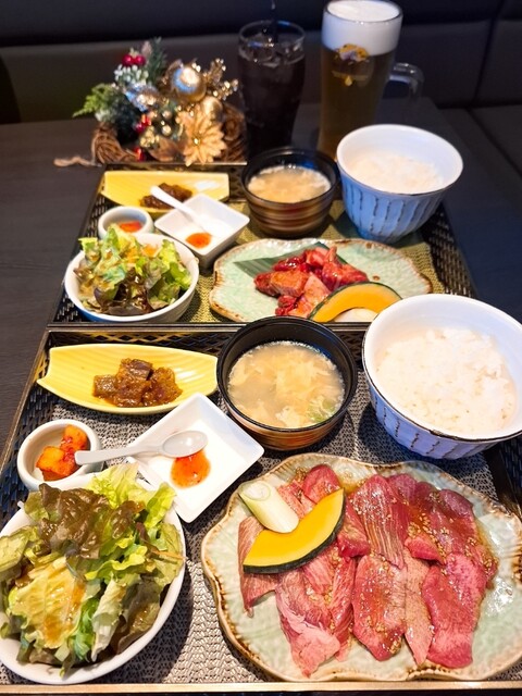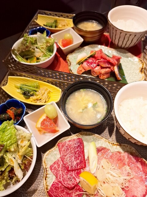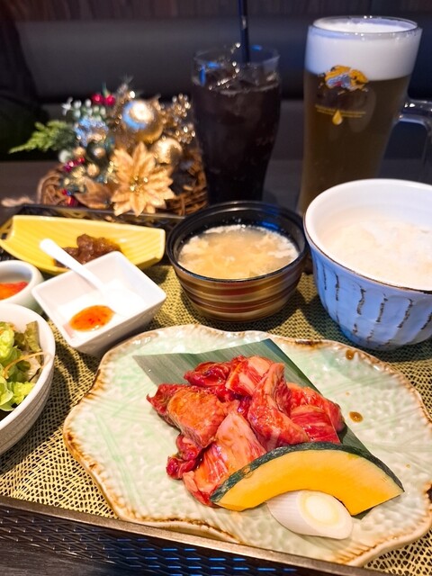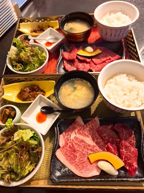 お肉がとても上質で脂もさっぱりしていて甘いです。 ランチには小鉢、デザート、サラダ、ドリンク1杯付いてきて、ご飯のお代わりも無料です(2025年9月現在)。