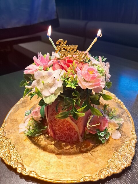 記念日肉ケーキ(要予約、有料)や、記念日デザートプレート(要予約、無料)もあるので記念日やお誕生日にもオススメのお店です。
