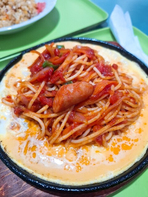 鉄板ナポリタンは卵がとろとろで、麺に絡めて食べると最高でした(^^)
