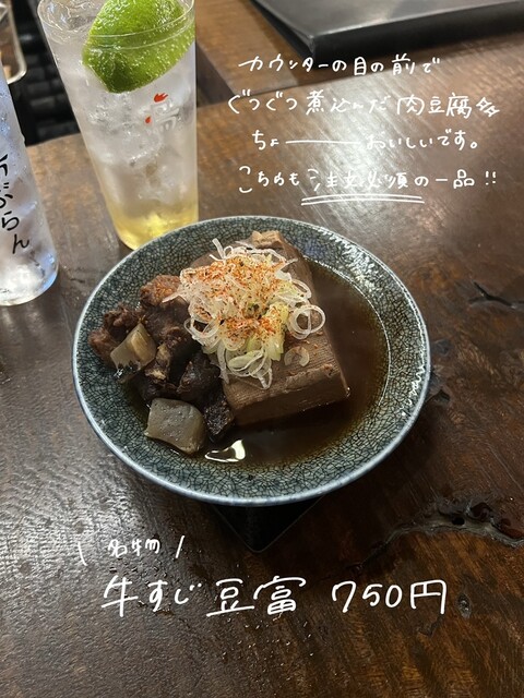 カウンター席の目の前で、ぐつぐつ煮込んで、しみっしみの牛すじ豆富。絶品です. . .✨