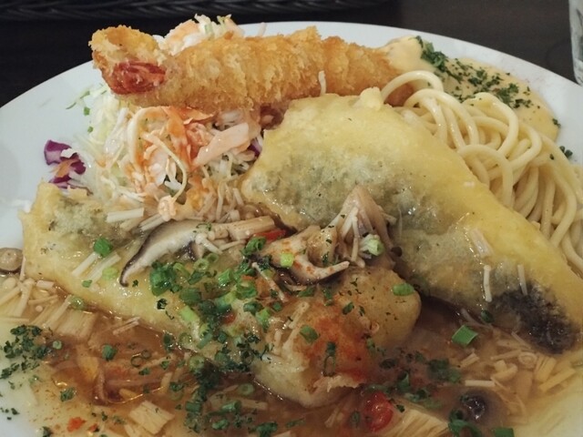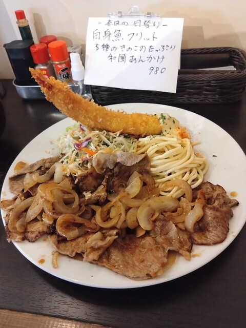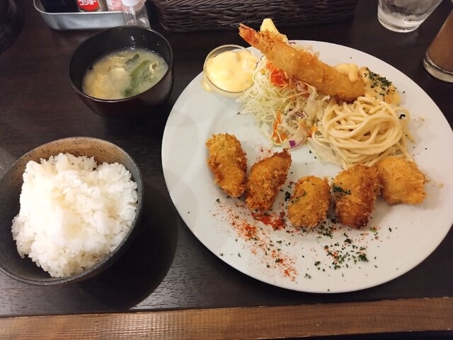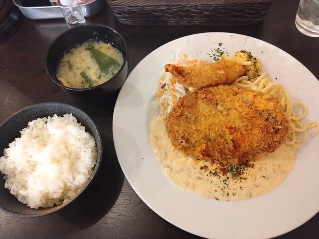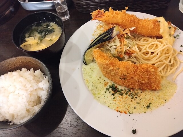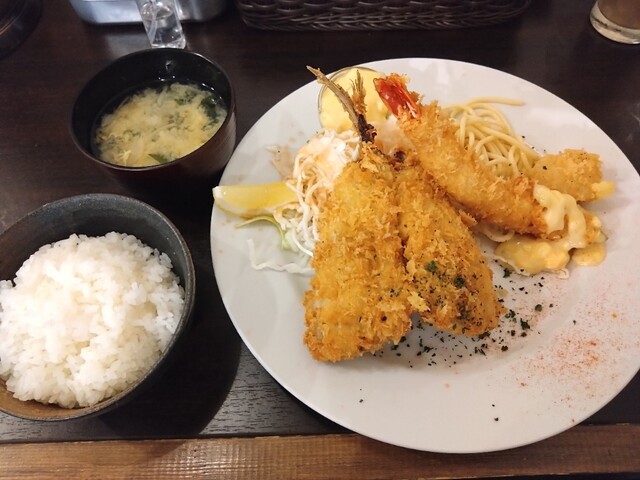 まぁ、常連裏メニューのエビフライトッピングもお願いしてご飯少なめにしていただきました