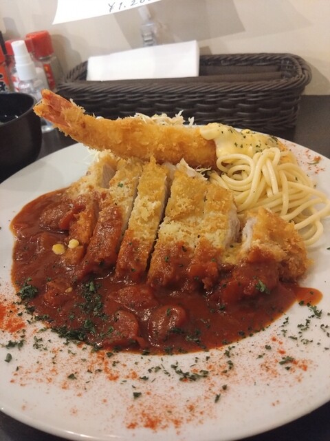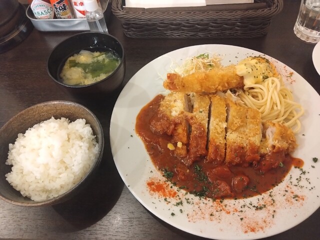 豚ロースカツレツのソースはピリ辛でとても身体が温まる一品です