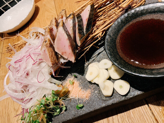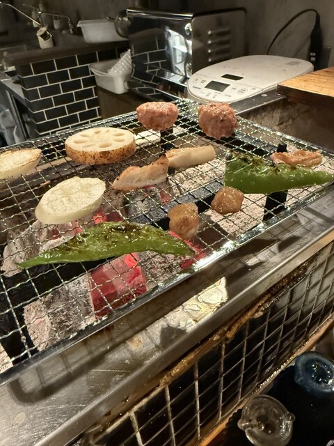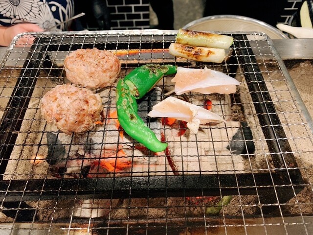 焼きたての鶏肉や旬のお野菜や鳥刺しと名物の大トロいわしをいただきました。