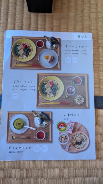家族は、中味そばぐなー定食、てぃーち定食のアーサートッピング、沖縄そば。
