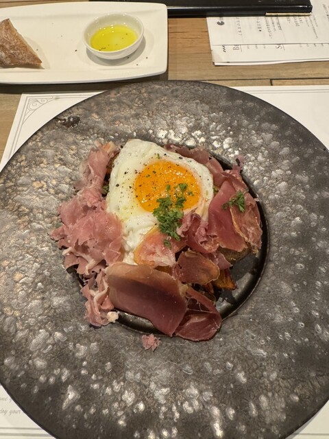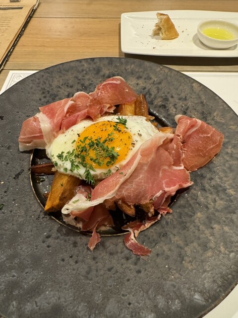 からのー、前に頼んで美味すぎたおいもさんに生ハムと目玉焼き。なんとなんとトリュフサービスしてくれた後、チーズもワッサーかけてくれましたw