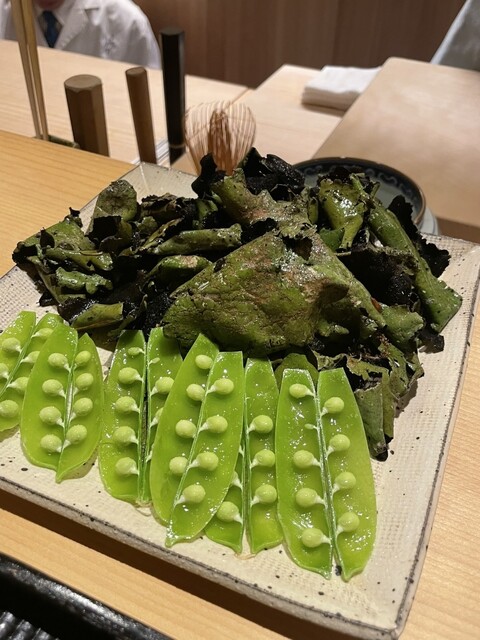 花山椒香るあまご、西浦あさりの天ぷら、太白アスパラに毛蟹とひろうす…