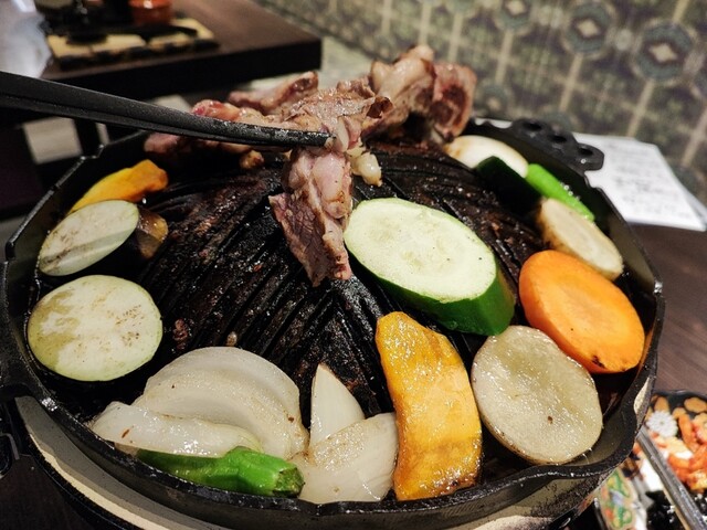 ダイエット中のためヘルシーな油が摂れるジンギスカンを食べにきました!ジンギスカンといえばもやしですが、ここは野菜のバリエーションが豊富でダイエット中でも○です。
