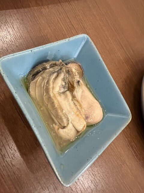 続々と運ばれてくる食事をまずは一口ずついただくのですが、まずは牡蠣のオイル漬け。こちらは牡蠣の旨味がこれでもかというぐらい凝縮しており出だしから口の中を幸せにしてくれました。