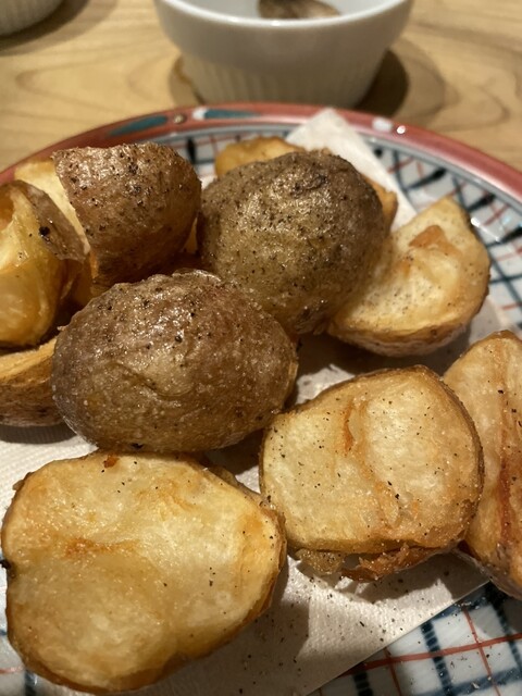 他に注文した、生落花生の塩茹でとフライドポテトも絶妙な塩加減でした。
