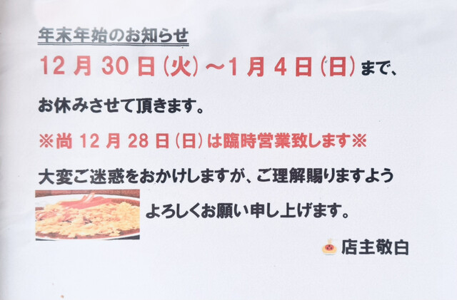 年末年始は12月30日〜1月4日までお休みです!