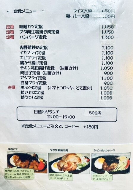 単品メニュー(どて丼、鉄板スパ、カレー等々)