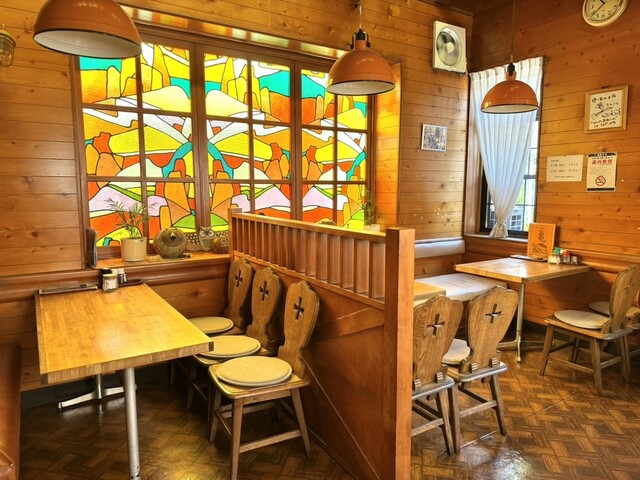 店内右手奥の座席(ステンドグラスが素敵✨)