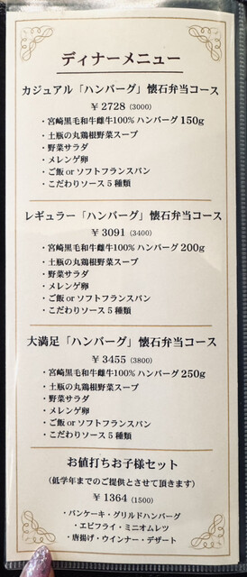 ハンバーグは、3種類のお味を楽しむ事ができ、