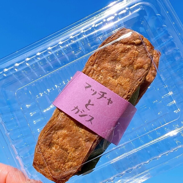 ザクザクの香ばしいパイ生地に、甘さ控えめなしっかり抹茶の餡と甘酸っぱいカシスソースがサンドされています。
