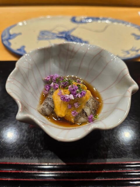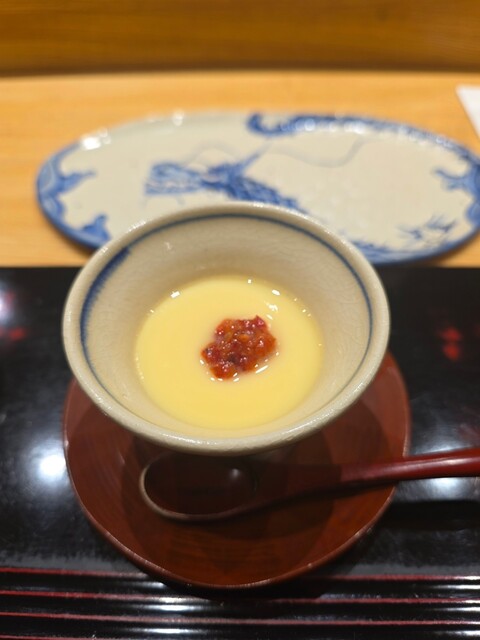 茶釜蒸しとレアの二段仕立てで、海老の旨みと香りをしっかり感じられる。