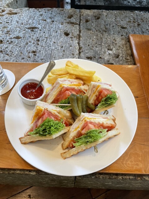 ランチの豚はほぼベーコンですね。フォークを刺したら崩れるようなお肉を想像していましたが、プリプリの柔らかいベーコンみたいなお肉で私は大好き。