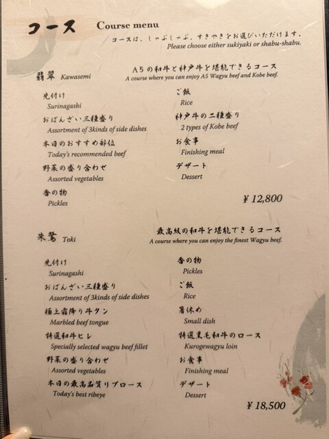 朱鷺〜とき〜コースをオーダー