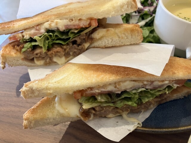 本日のホットサンド、サラダ、スープ、コーヒー付き