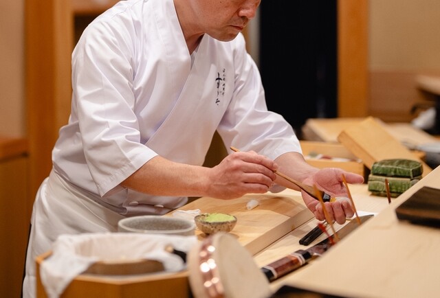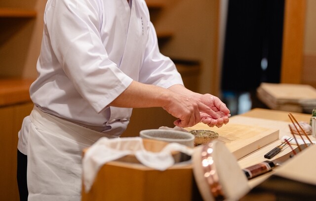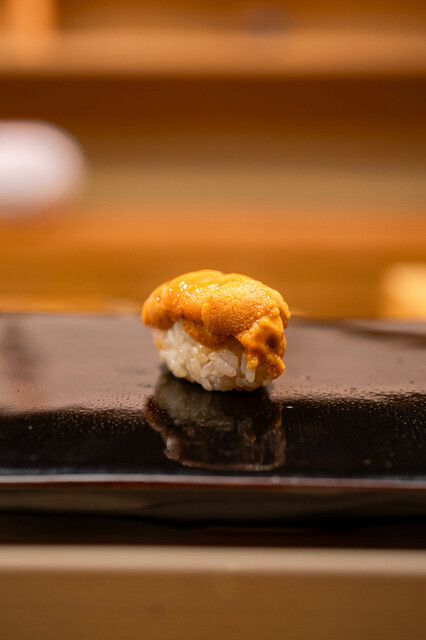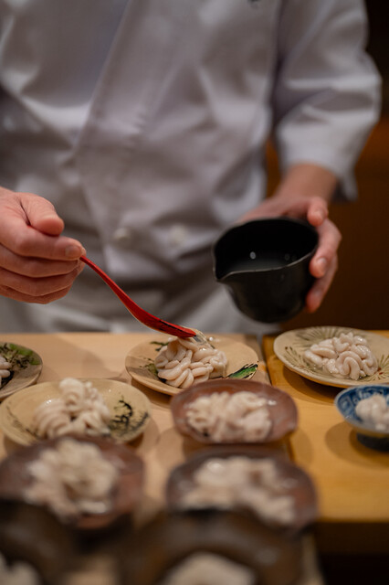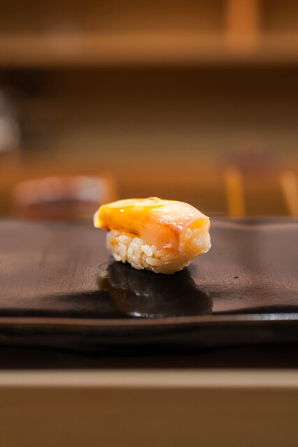 夏に二度訪れたが、二度目のほうが恐ろしいほどの完成度で、日本一の高評価を誇る鮨店の名にまったく恥じない。端正で美しい仕事はもちろん、軽やかさの中に繊細なディテールが幾重にも折り重なり、その一貫ごとの余韻がまさに“夏の鮨”としての心地よさを運んでくる。運よく、空気がふわりと沈み込むあの瞬間まで最も鮮明に撮れたのも印象深い。