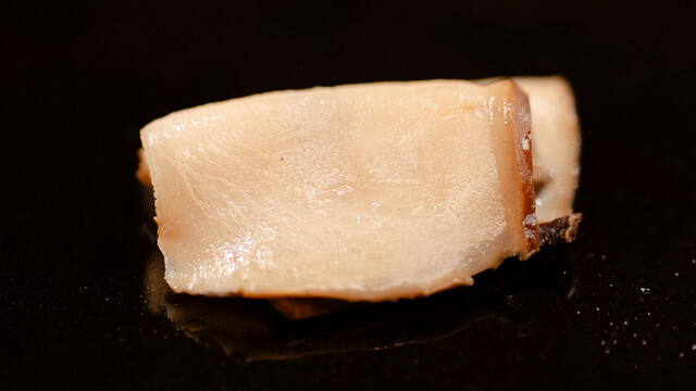赤身はとりわけ印象的で、外側から内側へとごく軽い抵抗を感じながら歯を入れた瞬間、身が切れるところにわずかな「シャキッ」とした歯切れがある。そこに若い個体の要素も重なり、意図的かどうかは分からないが、結果として驚くほど“夏らしい”感覚に仕上がっていた。