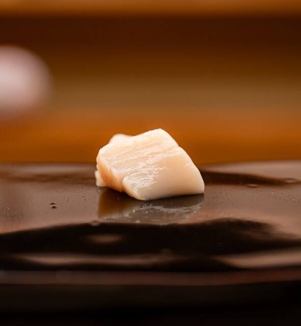冬の終わりに差し掛かる食材たちは、まさに完璧でした。特に、小肌は先月と比べても格段に素晴らしく、その美味しさには思わず追加で二貫頼んでしまうほどでした。また、貝の季節を迎え、赤貝がデフォルトのコースに登場し、さらに私が大好きな魚「クエ」も味わうことができました。印象的だったのは、安康魚の肝が一時的に泥状の状態を試みた後、元の形に見事に回帰した点です。ただし、表面の処理方法には新たな工夫が感じられ、常に進化を続けていることが分かります。やはり、素晴らしいものは無意識のうちに細部まで磨き上げられていくものだと実感しました。