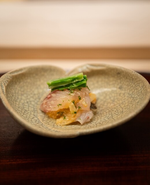 春の味覚の中でも、今年一番心を掴まれたのが、この一本のとうもろこしのように甘くてジューシーな筍でした。普段はあまり野菜を好まない私ですが、一口食べた瞬間に「これは別格」と思わせるほどの衝撃。シャキッとした食感に、口いっぱいに広がる香ばしさと甘み…惜しむらくは、一週間後の再訪ではすでに季節の移り変わりでメニューから外れていたこと。まさに一期一会。